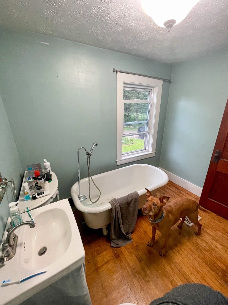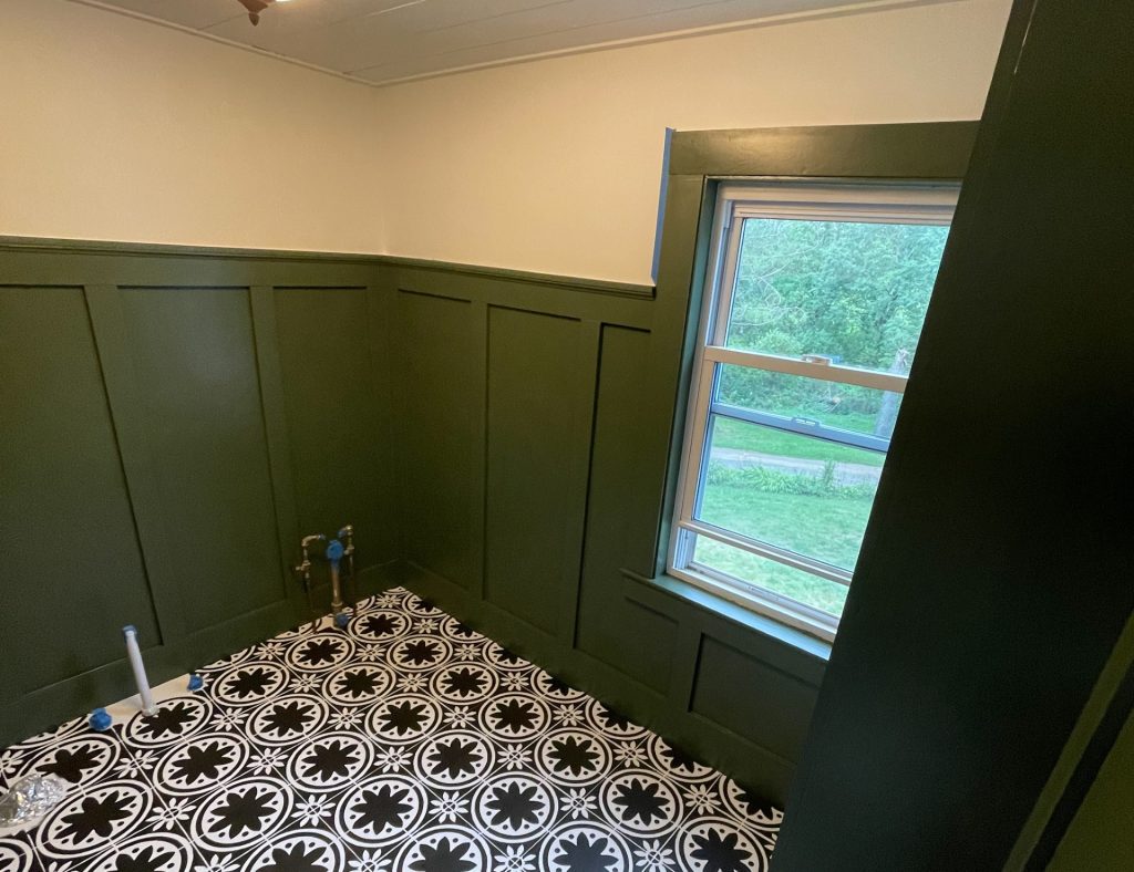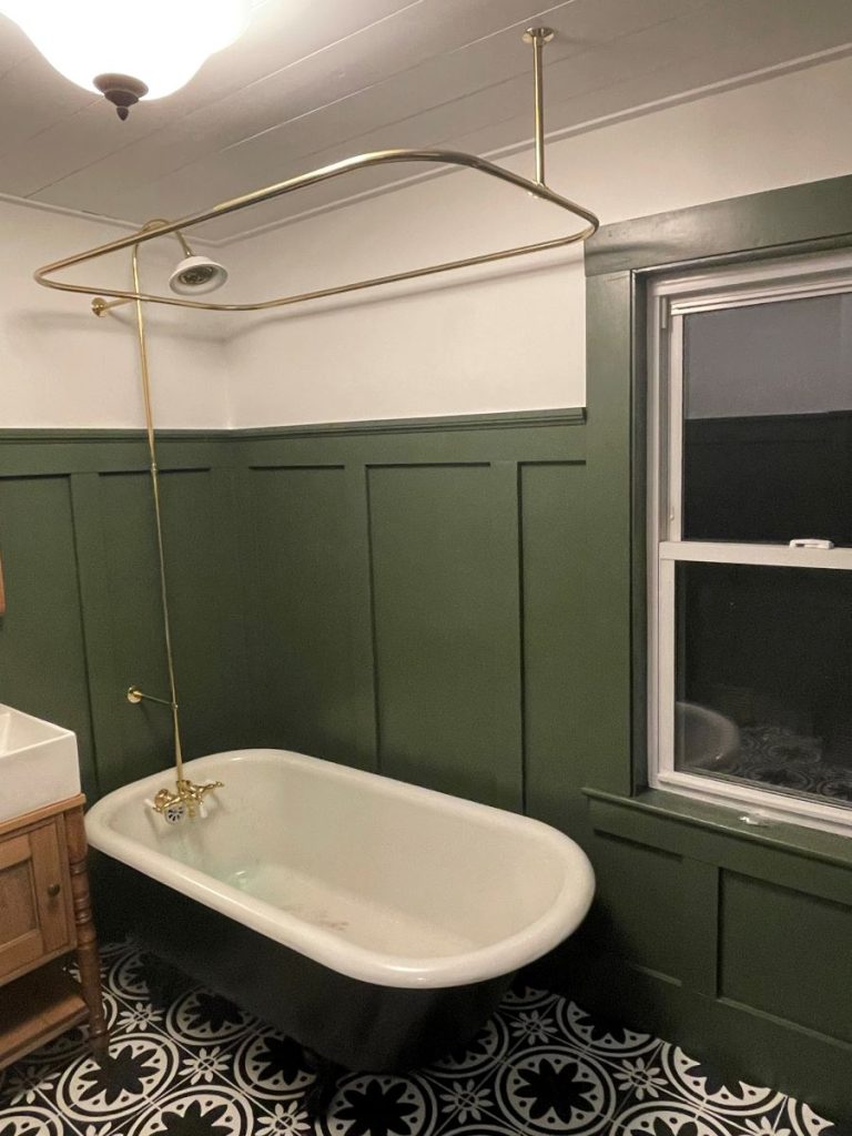 For our bathroom, I wanted to create a moody historical feel, with dark walls that accentuated the tall ceilings. The board and batten played a huge role in this and really gave the room something special.
