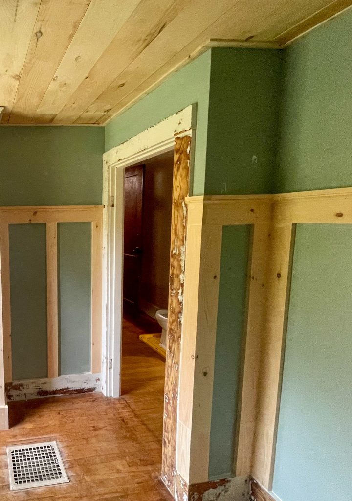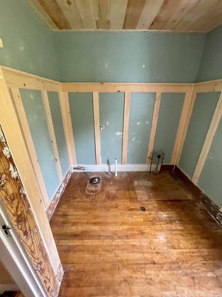 I decided to start with woodworking that needed to take place, this included adding the DIY board and batten to the walls and shiplap to the ceiling. See my ceiling shiplap post HERE.